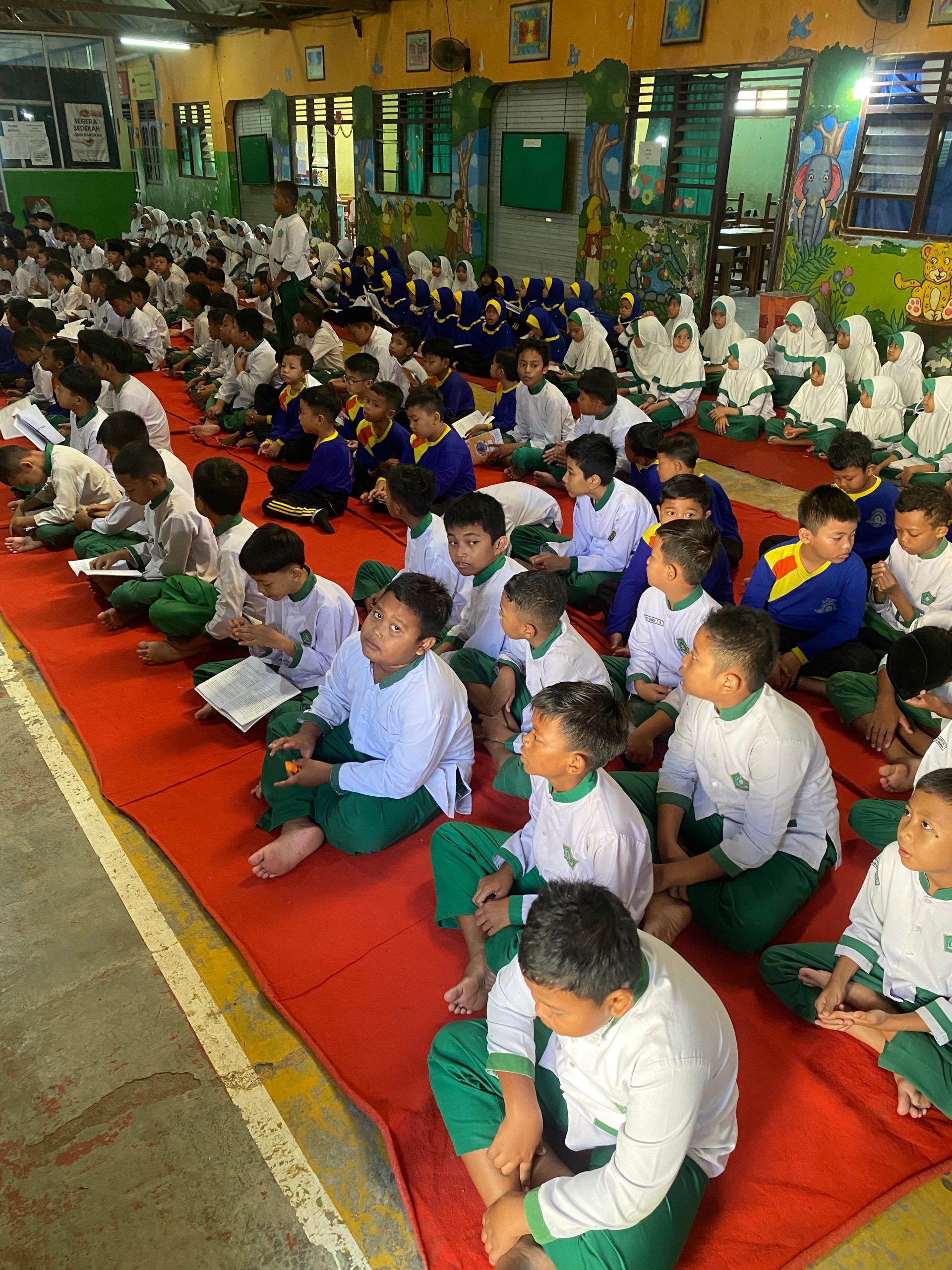 Kegiatan dzikir pagi di MIM 1 PK Sukoharjo menjadi sebuah tradisi yang terus dijaga untuk menanamkan spiritualitas dan akhlak mulia dalam diri siswa sejak usia dini. Setiap pagi, sebelum proses belajar dimulai, seluruh siswa berkumpul bersama di ruang yang telah disiapkan, duduk rapi di atas hamparan karpet, sambil menanti arahan dari para guru pembimbing. Suasana yang tercipta selalu tenang, tertib, dan penuh kekhusyukan, seolah menjadi penanda bahwa hari itu akan dimulai dengan niat yang baik.