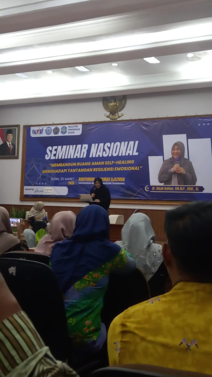 Seminar nasional yang mengangkat tema “Membangun Ruang Aman Self-Healing dalam Menghadapi Tantangan Resiliensi Emosional” menjadi momentum penting bagi para pendidik untuk memperkuat peran mereka dalam mendampingi kesehatan mental peserta didik. Kegiatan ini diselenggarakan pada Senin, 30 Maret 2026, bertempat di Gedung Muh. Djazman, Universitas Muhammadiyah Surakarta (UMS), dan menghadirkan dr. Aisah Dahlan sebagai narasumber utama yang dikenal luas dalam bidang kesehatan mental dan pengembangan diri.