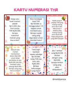 Siswa kelas 6 ICP, dengan wali kelas Wati Dwi Kasanah, S.Pd mengerjakan soal yang diberikan wali kelas berupa kartu numerasi THR. Siswa dibagikan 2 kartu numerasi THR berupa soal numerasi sederhana yang harus dikerjakan. Tiap siswa mendapat kartu THR atau soal numerasi yang berbeda.