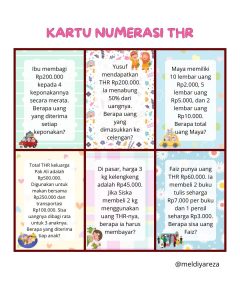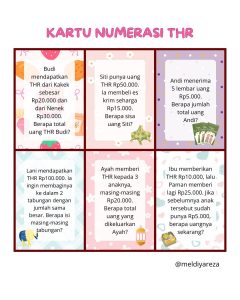 Kartu THR (Tunjangan Hari Raya) atau aktivitas bertema Lebaran. Ini bertujuan menyambut siswa, mempererat tali silaturahmi (halalbihalal), serta merefleksikan pengalaman liburan secara literasi dan numerasi yang menyenangkan, membuat suasana kelas kembali aktif dan hangat.
