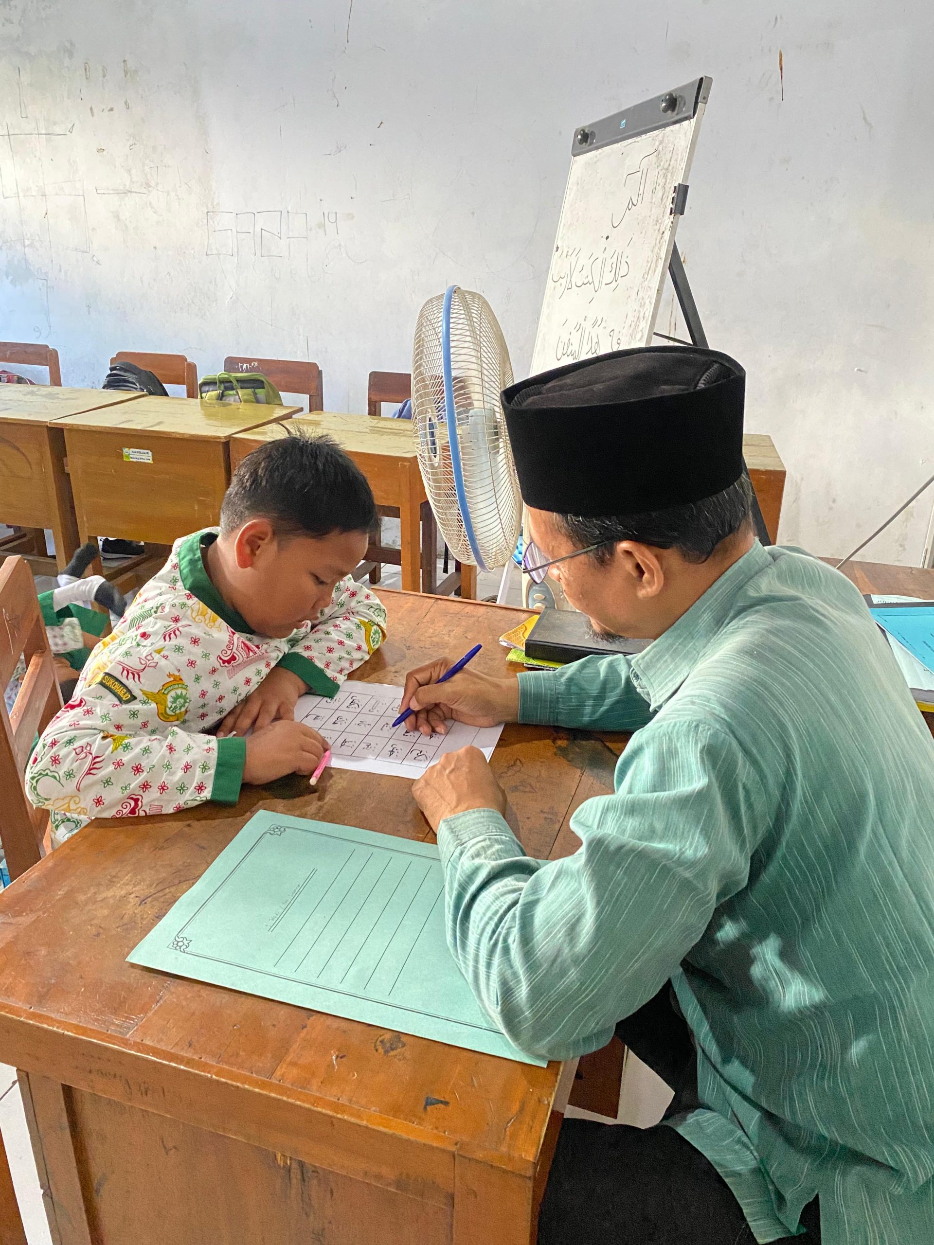 Suasana belajar yang tampak dalam kelas menunjukkan hubungan yang dekat antara guru dan siswa. Guru memberikan koreksi dengan lembut, mengarahkan cara membaca yang benar, dan memberi motivasi agar anak terus semangat. Pendekatan penuh kesabaran ini menjadi ciri khas pembinaan Qur’ani di MIM 1 PK Sukoharjo, di mana setiap anak dihargai proses belajarnya.
