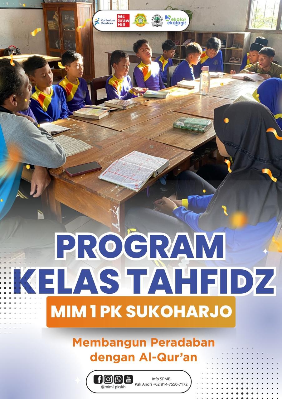 MIM 1 PK Sukoharjo menawarkan 2 program yang luar biasa, yaitu kelas ICP dan kelas Tahfidz. Sampai saat ini anak-anak hebat kita sudah ada yg menginjak juz 24.