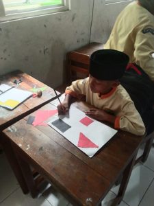 Kegiatan ini bertujuan untuk melatih ketelitian, kesabaran, serta kemampuan mengikuti instruksi, sekaligus mengembangkan keterampilan psikomotorik peserta didik, khususnya koordinasi antara mata dan tangan. Melalui proses mengukur panjang sisi, menggambar garis sesuai ukuran, hingga menggunting mengikuti pola, anak-anak dibiasakan bekerja secara rapi, teliti, dan bertanggung jawab terhadap hasil karyanya.