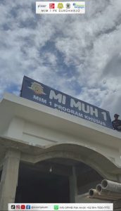 Kegiatan pemasangan papan nama ini dilaksanakan di lokasi pembangunan Gedung MIM 1 PK Sukoharjo, sebagai bagian dari tahapan finishing eksterior yang menandai bahwa pembangunan gedung telah memasuki fase penyempurnaan tampilan luar. Papan nama besar bertuliskan “MI MUH 1 – MIM 1 Program Khusus Sukoharjo” dipasang di bagian atas gedung sehingga identitas sekolah semakin terlihat jelas dan representatif.