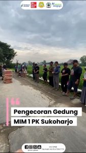 Alhamdulillāh, Madrasah Ibtidaiyah Muhammadiyah (MIM) 1 PK Sukoharjo kembali mencatat progres positif dalam pembangunan gedung sekolah. Pada Sabtu, 3 Januari 2025, telah dilaksanakan kegiatan pengecoran lantai dua gedung MIM 1 PK Sukoharjo yang berlangsung lancar sejak pukul 08.00 WIB hingga sore hari. Kegiatan ini merupakan bagian dari ikhtiar bersama dalam menghadirkan sarana dan prasarana pendidikan yang lebih representatif, aman, dan nyaman guna menunjang proses pembelajaran serta membentuk generasi Islami yang unggul.