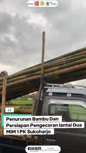 Sabtu, 6 Desember 2025 Pembangunan gedung baru MIM 1 PK Sukoharjo kembali menunjukkan kemajuan signifikan. Pada hari ini, proses penurunan bambu dilakukan sebagai bagian dari persiapan penting menuju tahapan pengecoran lantai 2. Kegiatan ini menjadi salah satu langkah krusial dalam memastikan kekokohan dan keamanan struktur bangunan yang nantinya akan digunakan untuk mendukung proses pendidikan.