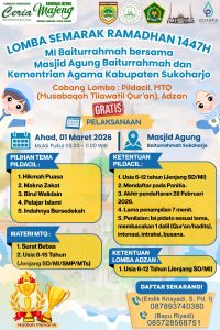 Sukoharjo turut ambil bagian dalam berbagai cabang perlombaan, yaitu MTQ (Musabaqah Tilawatil Qur’an), Pildacil (Pemilihan Dai Cilik), dan Adzan. Kegiatan lomba Tingkat Kabupaten yang diselenggarakan di Masjid Baiturrohman Sukoharjo ini menjadi ajang untuk menumbuhkan semangat religius, keberanian, serta menggali potensi siswa di bidang keagamaan.